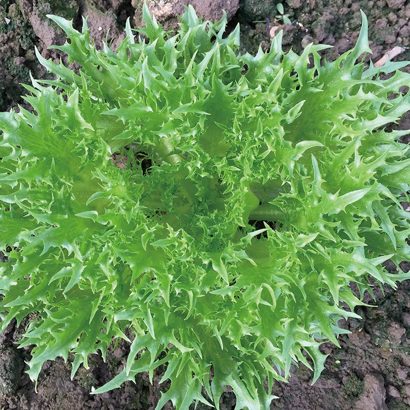 葉色淡綠的色拉生菜,葉片脆,口感好,葉緣缺刻深,生長(zhǎng)速度快,葉片數(shù)多,適合作色拉食用兼觀賞。