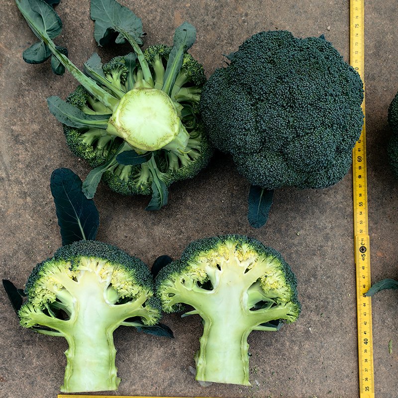 定植后85-90天成熟。植株長勢旺盛,較耐貧瘠,半直立株型?;ㄇ蚋邎A,球色深綠,球面圓整,蕾粒緊實、中細均勻,單球重約500g。適合鮮銷及加工。