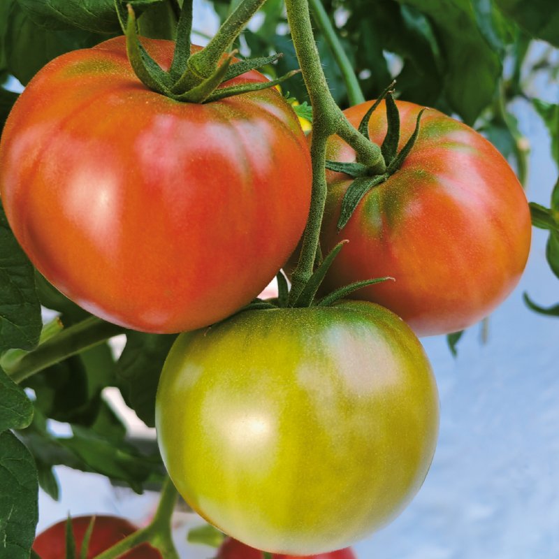 酸甜適中、綜合耐病性優(yōu)良的口感番茄新品種。生長勢中等,無限生長類型,節(jié)間緊湊,連續(xù)座果性好,低溫期座果穩(wěn)定,不易化果。疏果后平均單果重260-300g。通過控水栽培措施,青肩及表面放線明顯,糖度穩(wěn)定5度以上,硬度好,耐儲(chǔ)運(yùn)。綜合耐病性好, 抗葉霉病、番茄花葉病毒Tm-2、番茄黃化病毒、根腐萎凋病,耐青枯病、黃萎病。