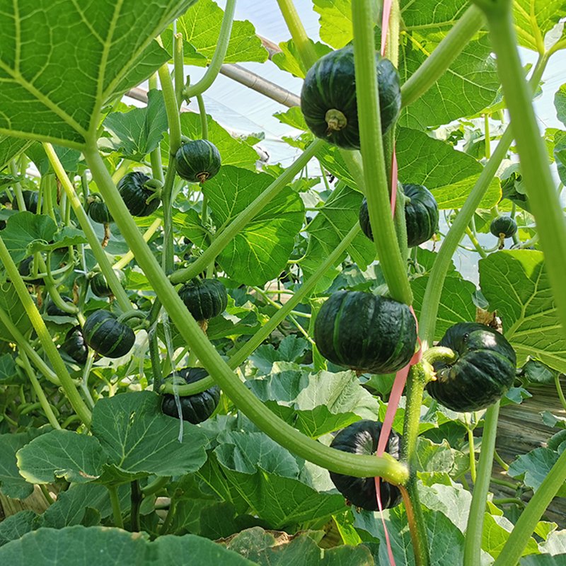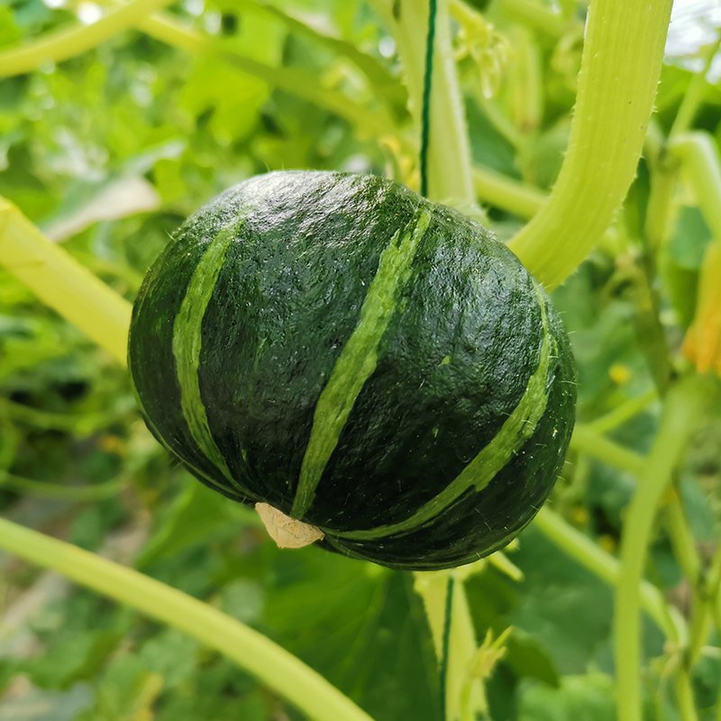 果皮黑綠色帶淺綠色條紋,果重約500g的扁圓形強粉質(zhì)品種。作為迷你南瓜口味特佳,微波爐內(nèi)整個加熱5-8分鐘即可食用,品質(zhì)超群。葉片比大果形品種小,長勢旺盛,后期不易早衰,收獲期長。單棵植株可以收獲10個以上,產(chǎn)量高,雌花每隔3-4個節(jié)位著生,開花后35-40天可收獲的早熟品種。