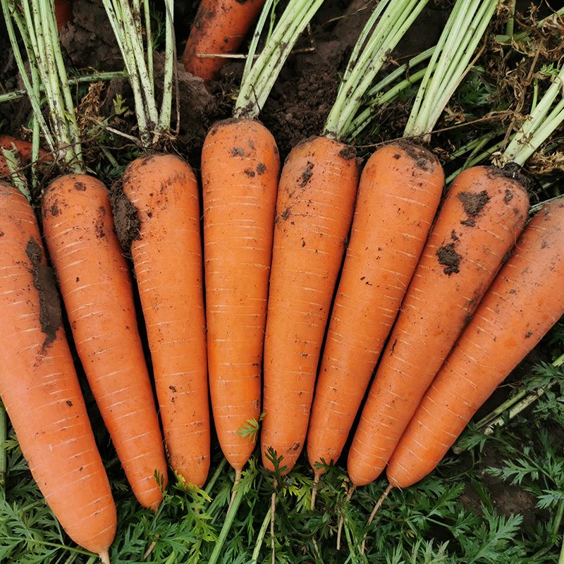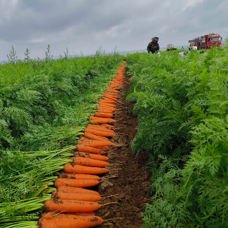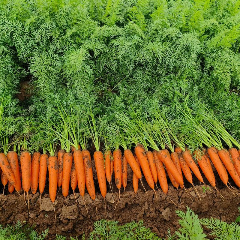 表皮顏色紅、整齊度高的雜交胡蘿卜新品種 葉色深綠、長勢中等,耐葉部病害能力強,葉片直立性好,易于田間管理。低溫彭大性好,根型整齊,收尾好,韌性好,清洗后不易裂根,成品率高。
